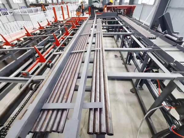 設備集中鋼管打孔和縮尖工序在一體的生產(chǎn)線(xiàn),操控臺控制整個(gè)加工流程,從鋼管原料到后面鋼管表面打孔和前端縮尖加工完成的成品,生產(chǎn)線(xiàn)可以加工多種長(cháng)度規格、注漿孔布局規格的鋼管,具有生產(chǎn)效率高、操控自動(dòng)化程度高的優(yōu)點(diǎn)。